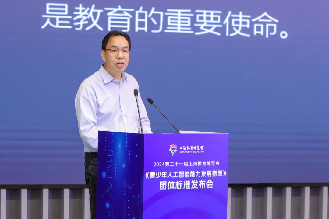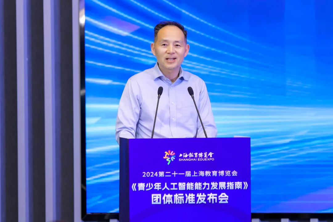 jiuyou.com九游(中国)机器人有限公司官网院长郑军奇,上海教育报刊总社副社长徐勇,上海市人工智能标准化技术委员会副秘书长、上海人工智能行业协会标准研究部部长陈曦分别上台致辞,对参与标准制定的所有高等院校、科研机构和企事业单位表示感谢,对团体标准的发布表示支持与祝贺,并对青少年人工智能教育的未来发展表示殷切的期望。